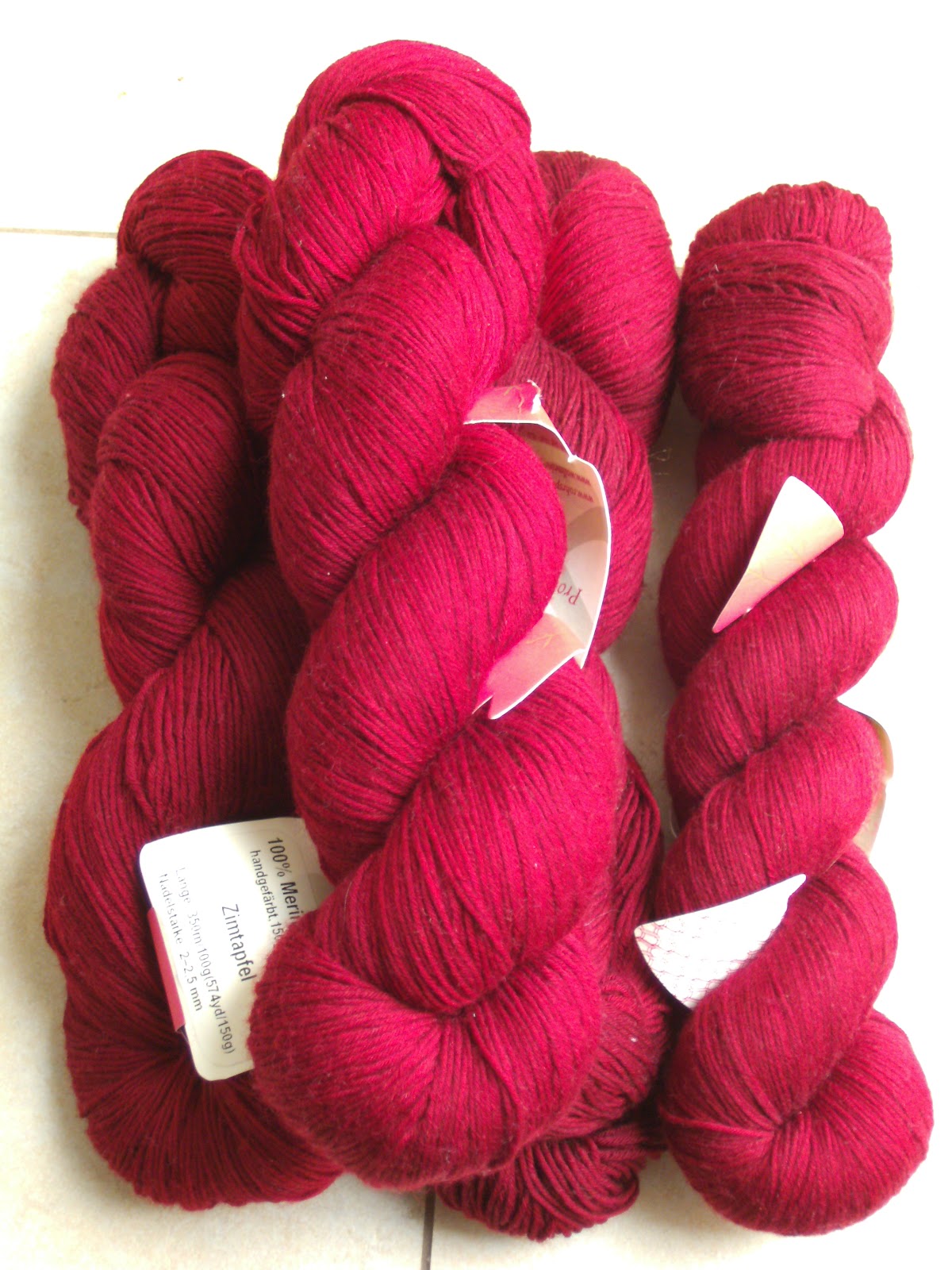 Die Anleitung liegt vor, fehlt nur noch das passende Garn. Die Cool Merino von dibadu lockt mich geradezu, ich warte noch ab, welche Färbungen ab 7. September zu haben sind. Im Wollkorb liegen aber noch vier Wollmeise-Stränge 100% Merino Superwash in weinrot, eine meiner liebsten Farben. Oder soll ich doch bei der angegebenen Garnstärke bleiben und mein hellgrünes Baumwoll-/Acryl-Garn von Gedifra verwenden? Das Garn heißt sinnigerweise "Florida", jetzt kann ich einen schönen Bogen vom Sunshine State zum Thema "Vitamin D" spannen ;-)