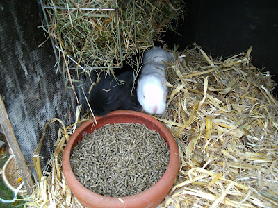 ... während die anderen beiden schon neugierig das Futter beschnüffeln.